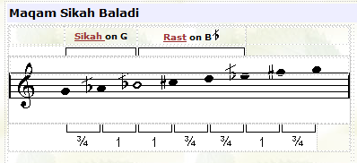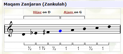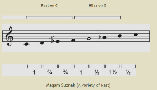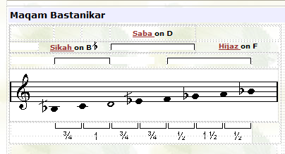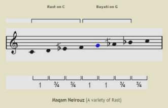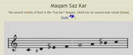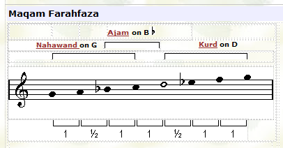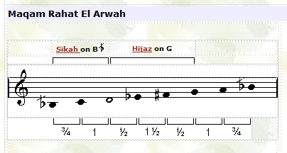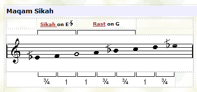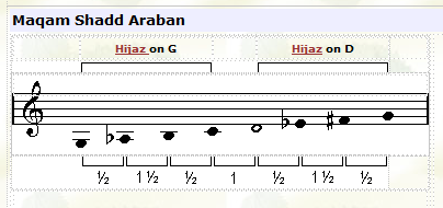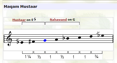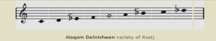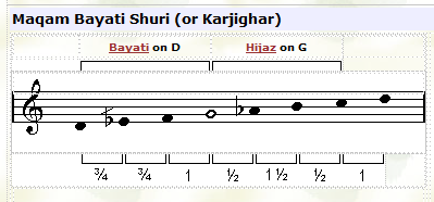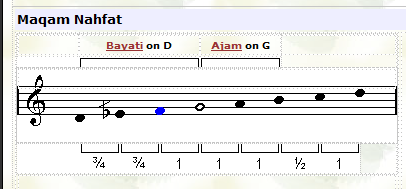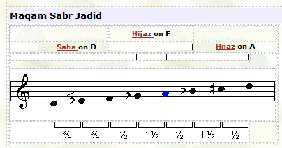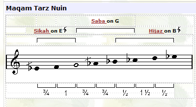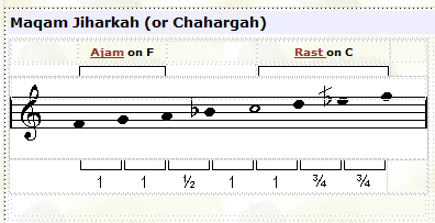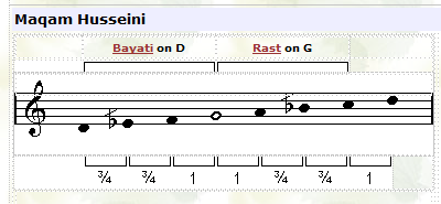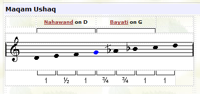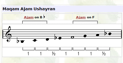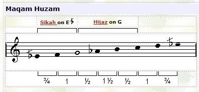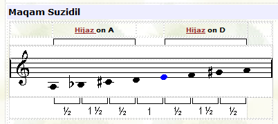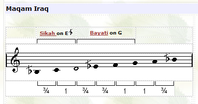 ![]() In this maqam the tuning of the third note (F) is played lower than usual. |