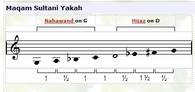 ![]() Maqam Sultani Yakah is a transposed version of maqam Nahawand, starting on G. |